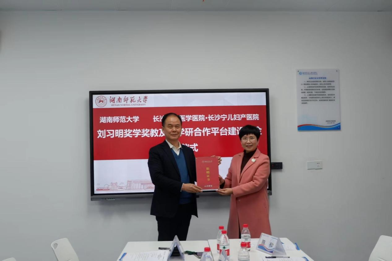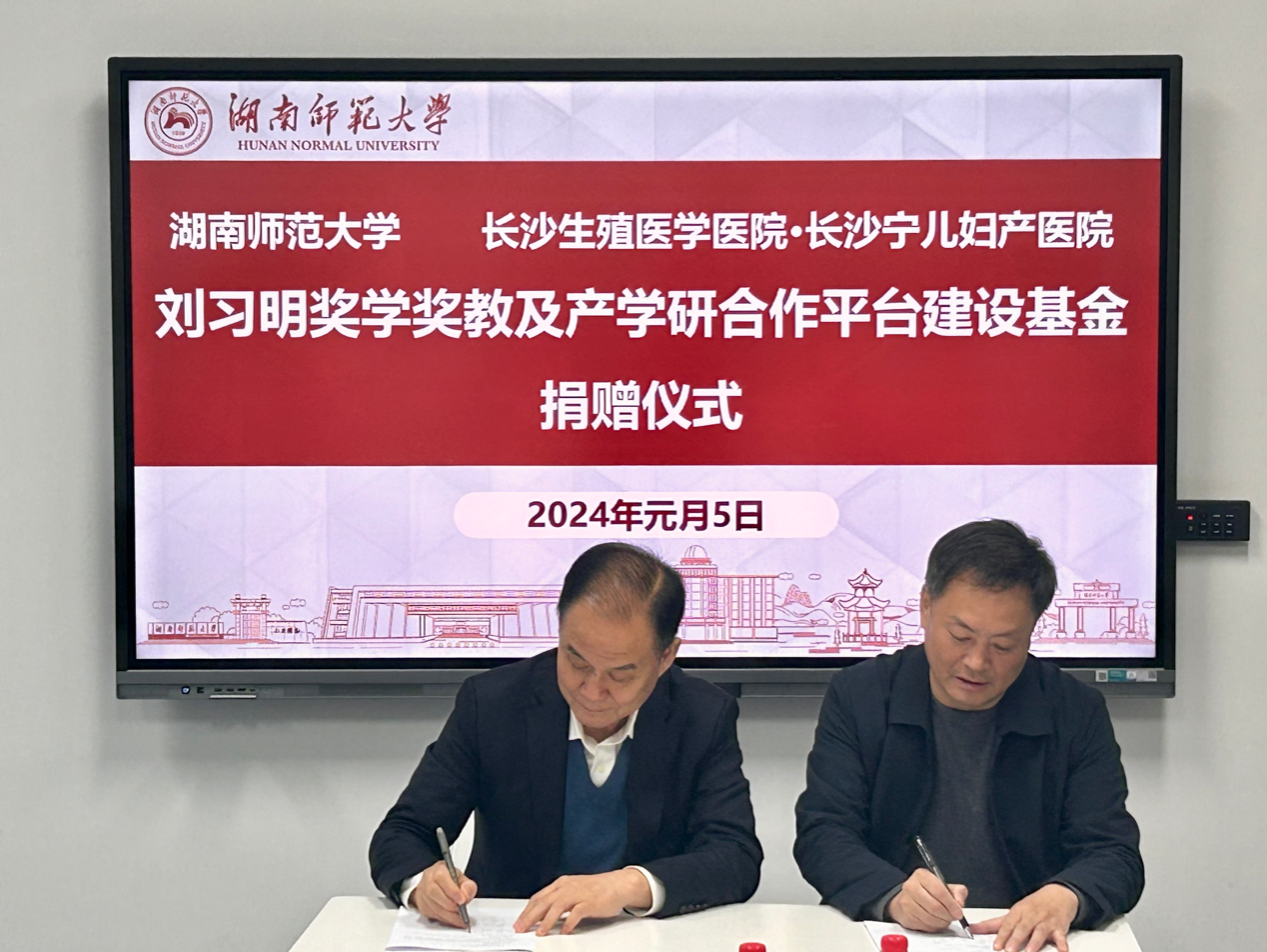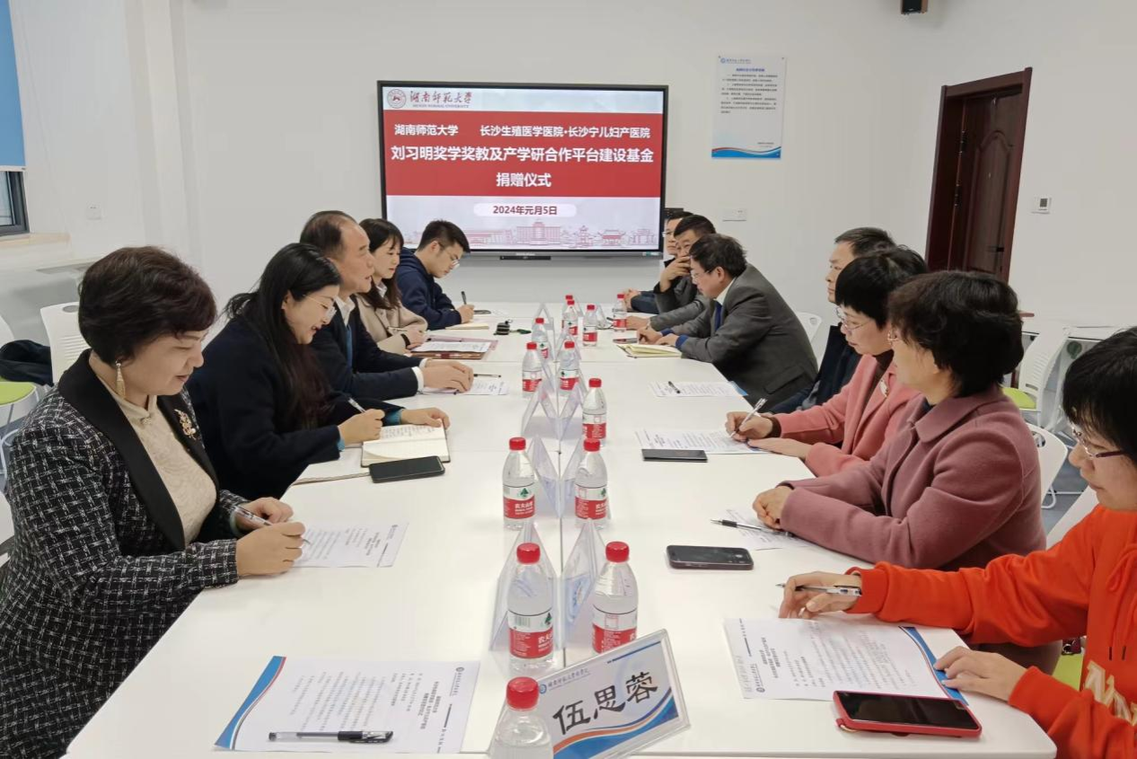 长沙生殖医学医院·长沙宁儿妇产医院是我校新晋教学医院,前期已向我校医学院捐赠奖学金50余万元,此次再向我校捐赠50万元,主要用于设立刘习明奖学奖教金和“人类生殖健康新技术”产学研合作示范基地平台建设。