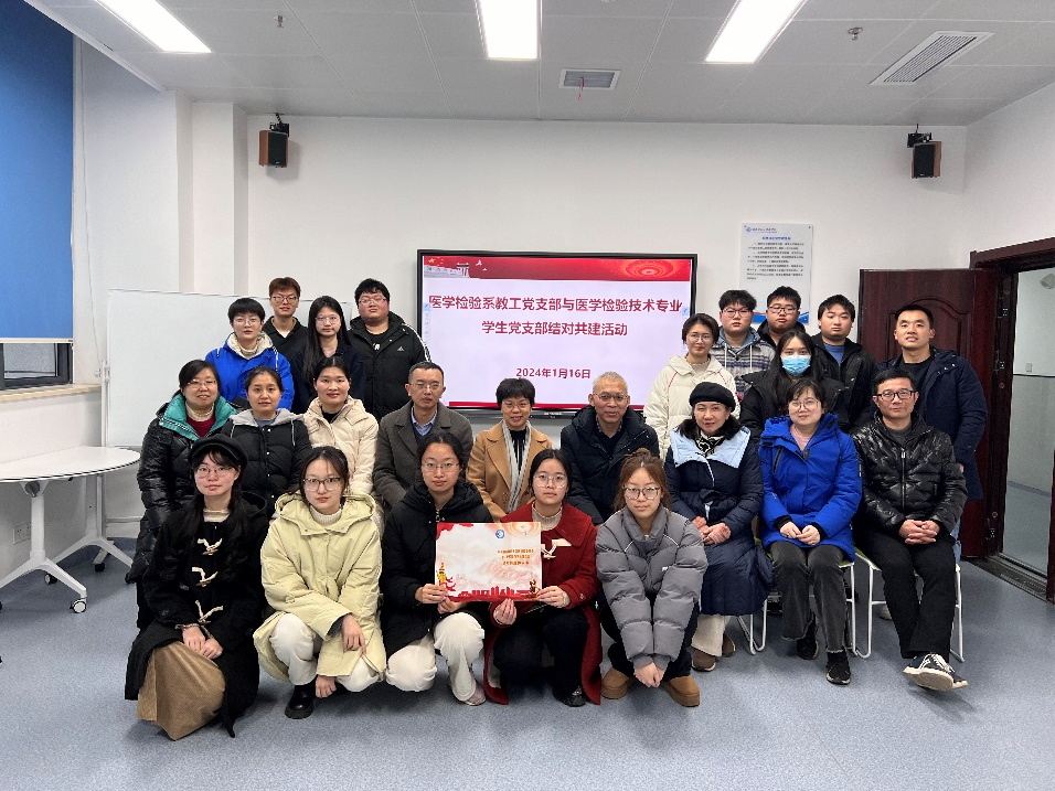 2024年1月16日下午,医学检验系教工党支部与医学检验技术专业学生党支部结对共建活动在综合楼227会议室举行,会议由支部书记袁仕善主持,医学检验系全体教工党员与医学检验技术专业全体学生党员和入党积极分子参加,院党委书记鄢朝晖出席会议。