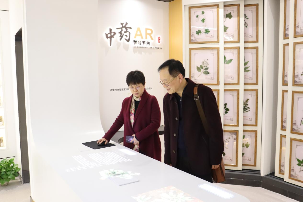 会后,一行人实地参观了现代化中药科教馆,探讨中药文化馆在教学中的作用,并合影留念。