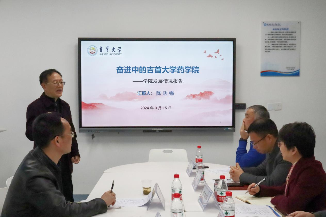 何祖平对吉首大学药学院的来访表示欢迎,并从历史概况、教学条件、学科建设、教学成果等十个方面介绍了永利集团官网当前的发展情况,指出交流促进发展,合作推动共赢,希望与吉首大学药学院进行深度交流,互惠互利,找到合作发展的契机。
