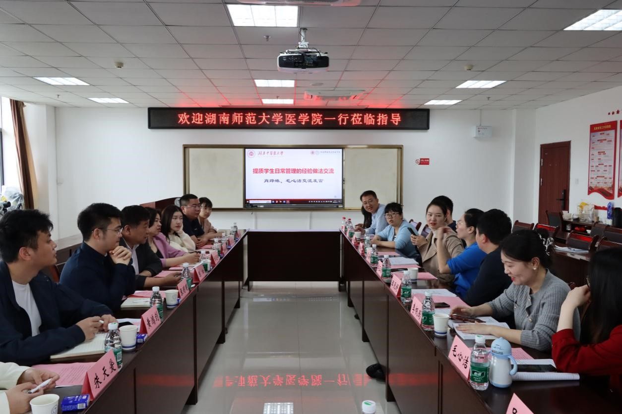 2024年4月18日上午,永利集团官网党委副书记陈松带队赴湖南中医药大学医学院学习调研、交流座谈,永利集团官网党委副书记陈松、学工办主任张晓红、团委书记张明明及部分辅导员参加座谈会,会议由湖南中医药大学医学院党委副书记李玉冰主持。