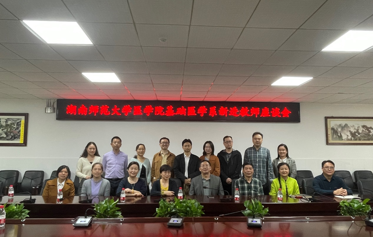 聚有识之师、栽参天之木。2024年4月20日,我校永利集团官网基础医学系在仁医楼207会议室召开近两年新进教师(郭晓伟、谷峰、欧阳新平、王忆安、罗怀青、王小莉)座谈会。本次会议旨在了解新进教师的工作生活情况,听取新进教师个人发展规划及对学院发展的建议。永利集团官网院长何祖平、党委书记鄢朝晖、副院长邓文艳、临床医学院副院长何平平、基础系各教研室主任及近两年新进教师参加了座谈会,会议由原基础系主任邓锡云主持。