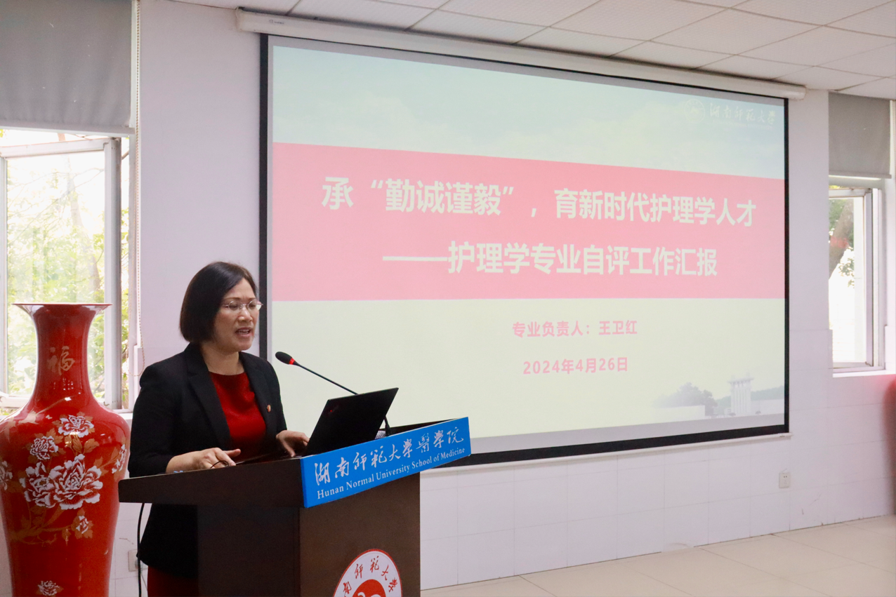 护理学系主任王卫红以“承“勤诚谨毅”,育新时代护理学人才”为题,汇报了护理学专业的办学优势与特色、建设举措与体会、未来发展与规划等情况。专家组针对汇报材料进行了提问,如师资力量、人才引进激励措施、人才培养举措等,永利集团官网相关负责人进行了一一答复,双方共同讨论了永利集团官网护理学专业的优势和不足。