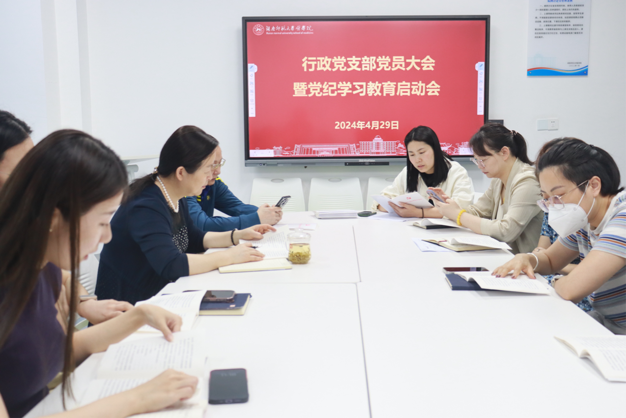 4月29日上午,永利集团官网行政党支部在综合楼228会议室召开召开党纪学习教育启动会,邓文艳副院长参加会议。会议由支部书记吴鹏主持。