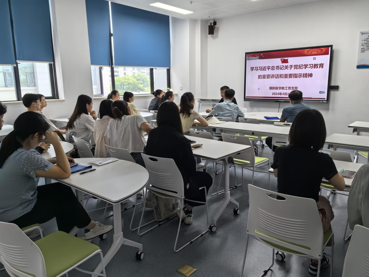 2024年4月26日中午,预防医学党支部在综合楼226召开党纪学习教育部署会,院党委副书记陈松出席了会议。会议由支部书记陈适主持。
