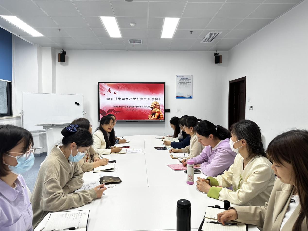 为深入贯彻落实党中央关于开展党纪学习教育的精神,4月30日中午,永利集团官网护理系党支部在综合楼227会议室召开党纪学习教育启动会。会议由支部书记何平平主持,护理系支部全体党员教师参会。
