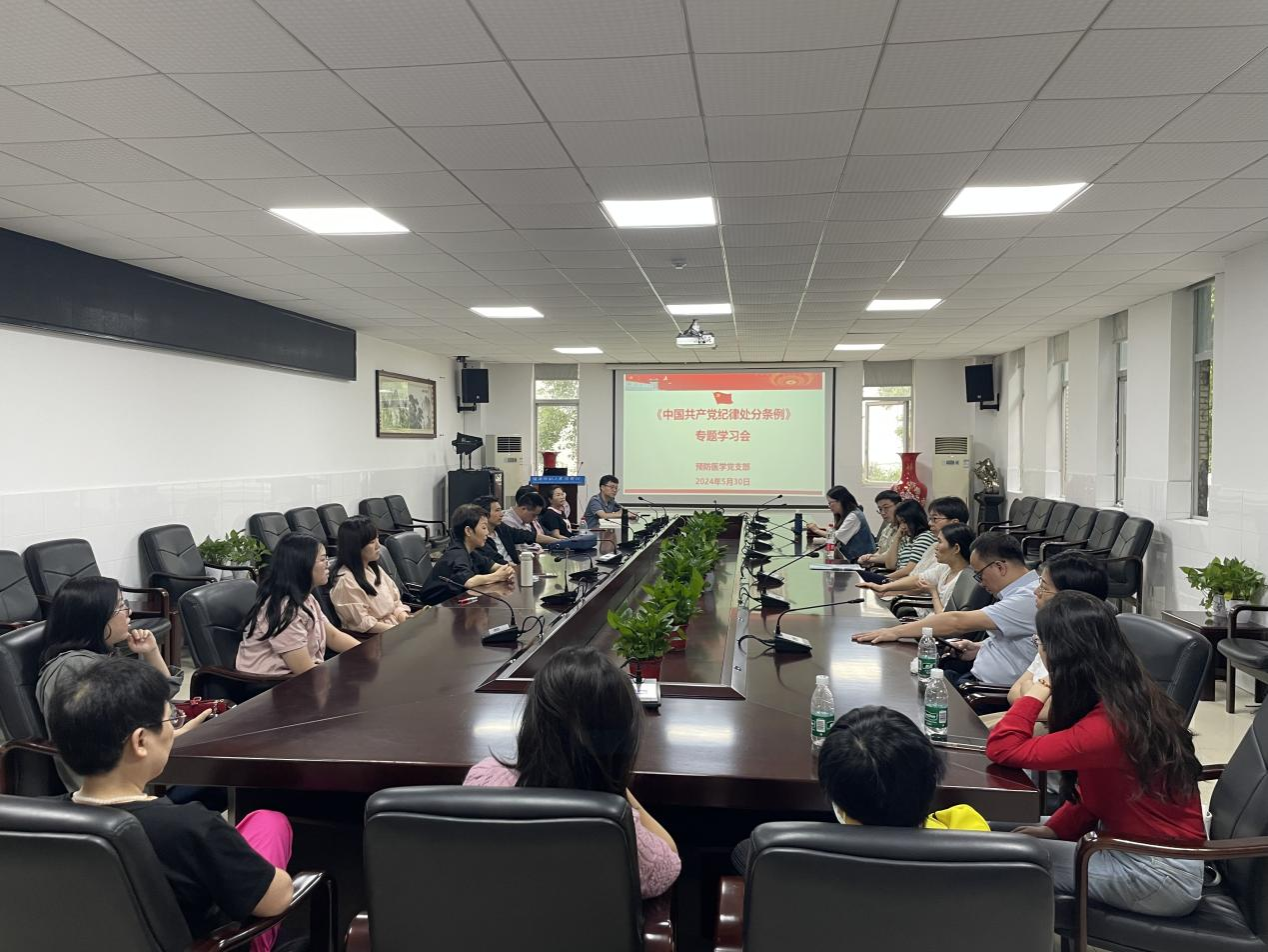 5月31日上午,为了加强党员纪律教育,提高党员的党性修养和自律意识,预防医学党支部在仁医楼207会议室召开了《中国共产党纪律处分条例》专题学习会。会议旨在通过深入学习和理解《条例》内容,使全体党员更加清晰地认识到党的纪律的重要性和严肃性,进一步筑牢思想防线,确保教师队伍的纯洁性和先进性。预防医学系全体老师,院党委副书记陈松出席参加了会议,会议由预防医学党支部书记陈适主持。