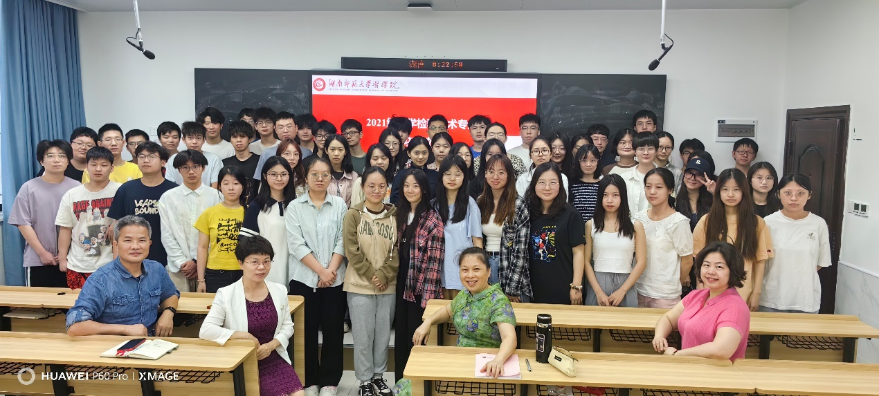 叶湘漓、张晓红和赵燕玲先后围绕实习心态与准备、实习规划与相关规章制度、安全意识与实习期间注意事项等问题进行了细致全面的讲解与答疑。最后,各位老师与检验班全体同学进行了合影留念。