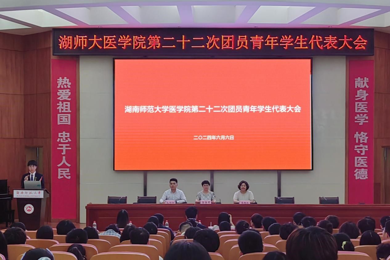 6月6日中午,永利集团官网于仁医楼学术报告厅举行第二十二次团员青年学生代表大会。院党委书记鄢朝晖,院学工办主任张晓红,院团委书记张明明,辅导员黄鸿剑、朱天爱、谢宇、高国文、周倩及青年学生代表参加此次大会。院青年传媒中心新闻媒体部播主队负责人符俊豪担任主持人。