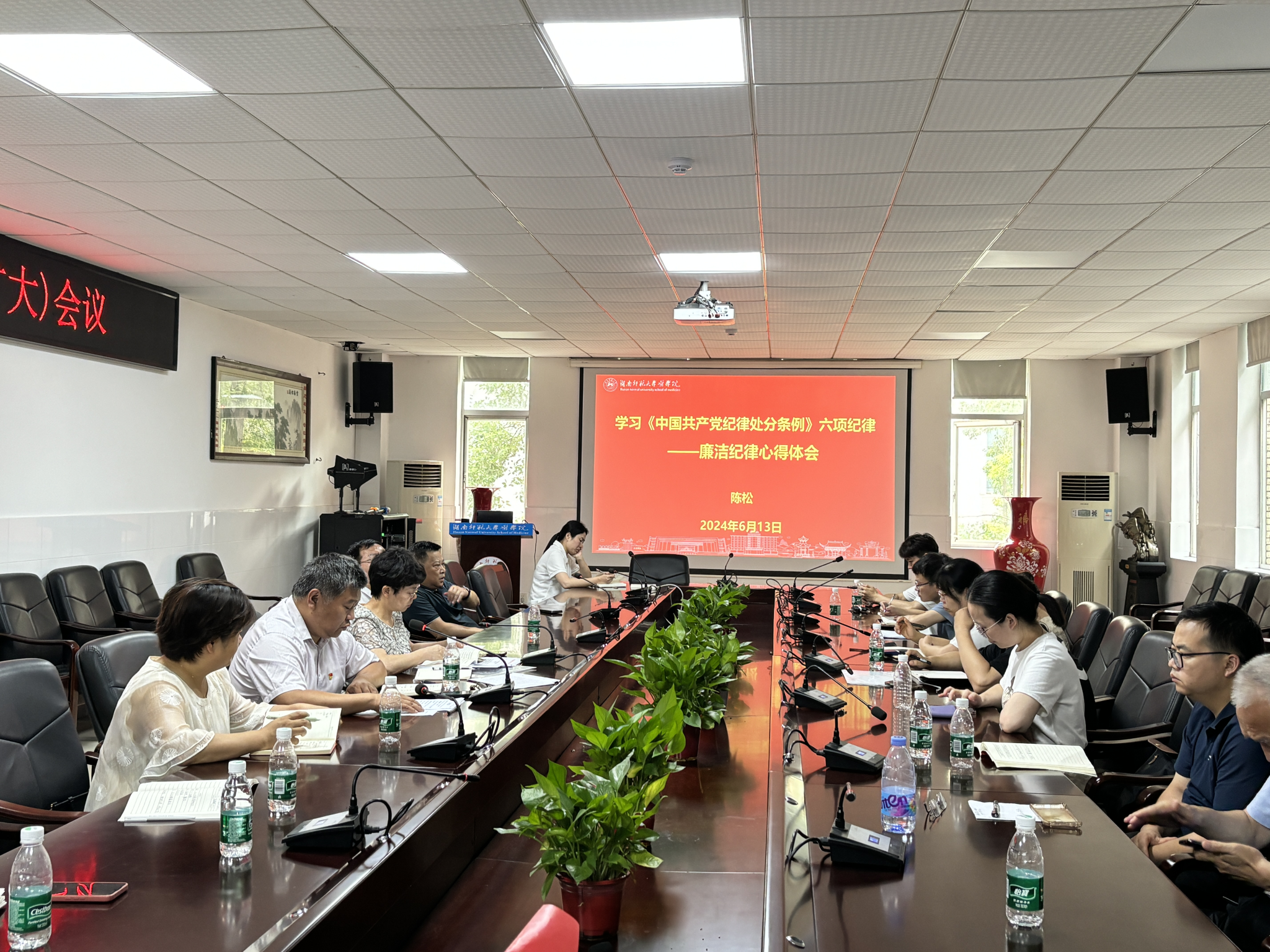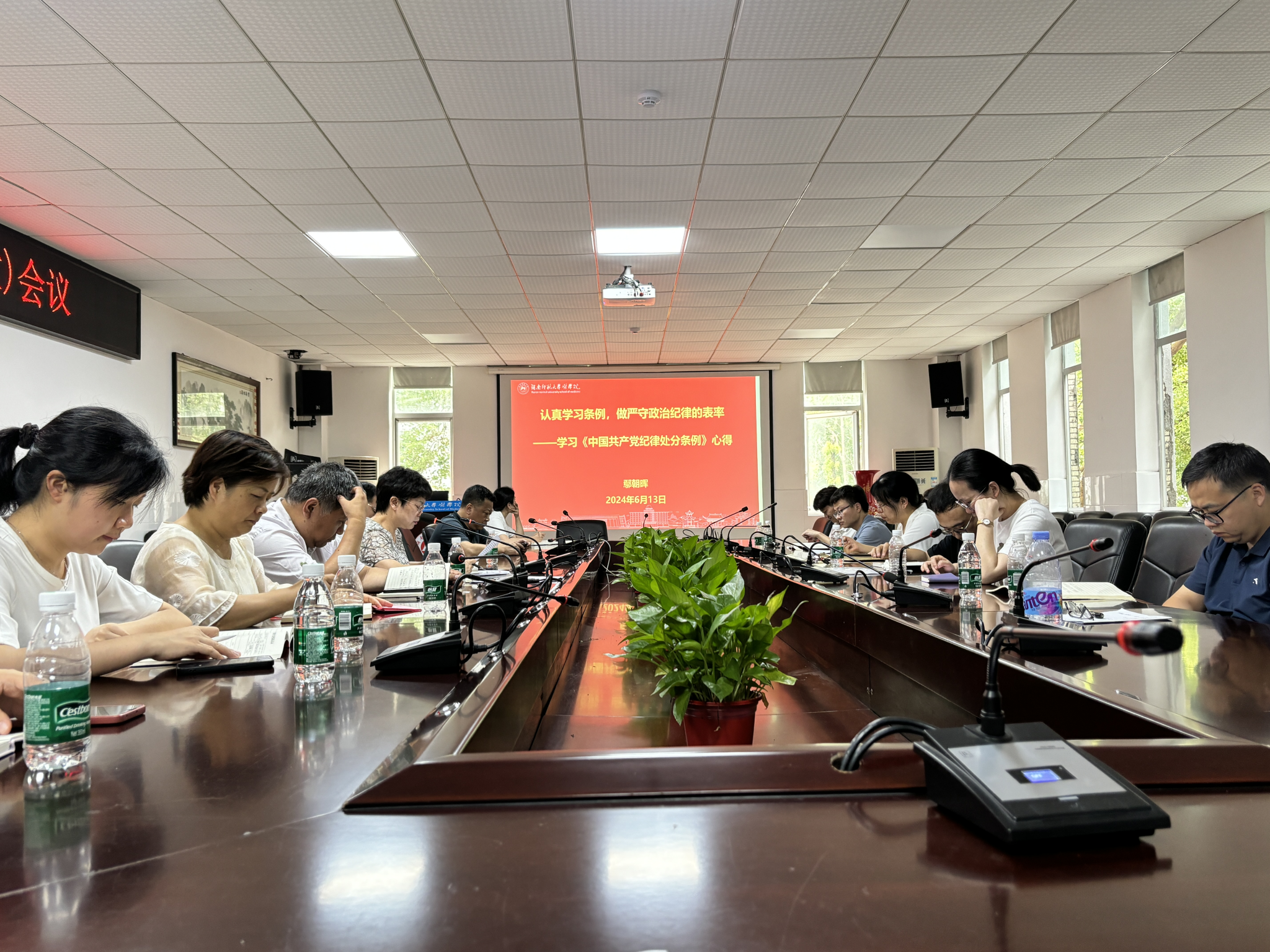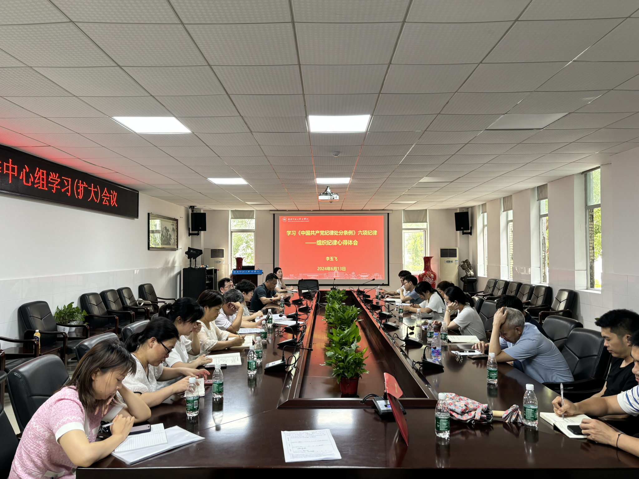 6月13日下午,永利集团官网在仁医楼207会议室召开党委理论学习中心组学习(扩大)会,深入学习领会习近平总书记关于全面加强党的纪律建设的重要论述,学习《中国共产党纪律处分条例》,重点学习了政治纪律、廉洁纪律、组织纪律的主旨要义和规定要求。全体班子成员和支部书记参加学习,党委书记鄢朝晖主持会议。