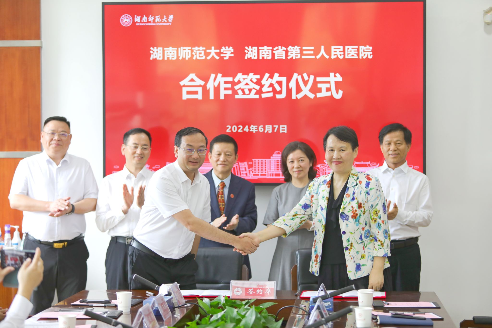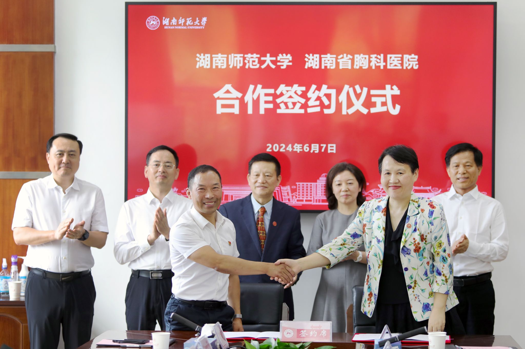 6月7日,我校与湖南省胸科医院、湖南省第三人民医院合作签约仪式举行。湖南省卫生健康委员会副主任易露茜、刘平安,校党委书记、欧洲科学院院士蒋洪新,副校长谢资清出席签约仪式。仪式由副校长刘怀德主持。