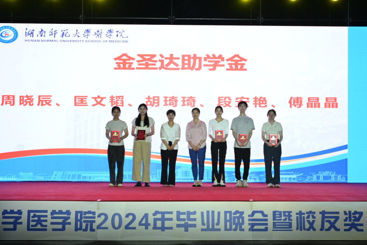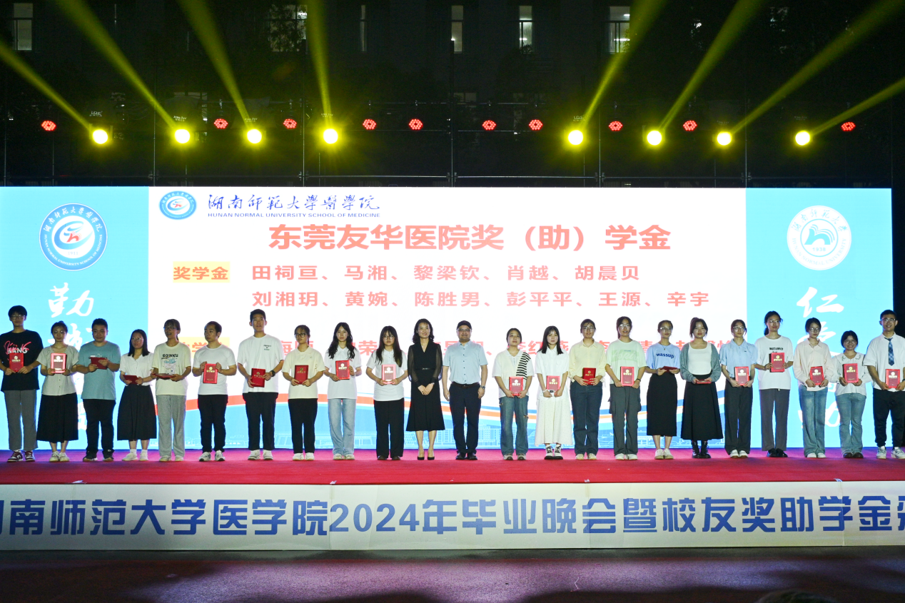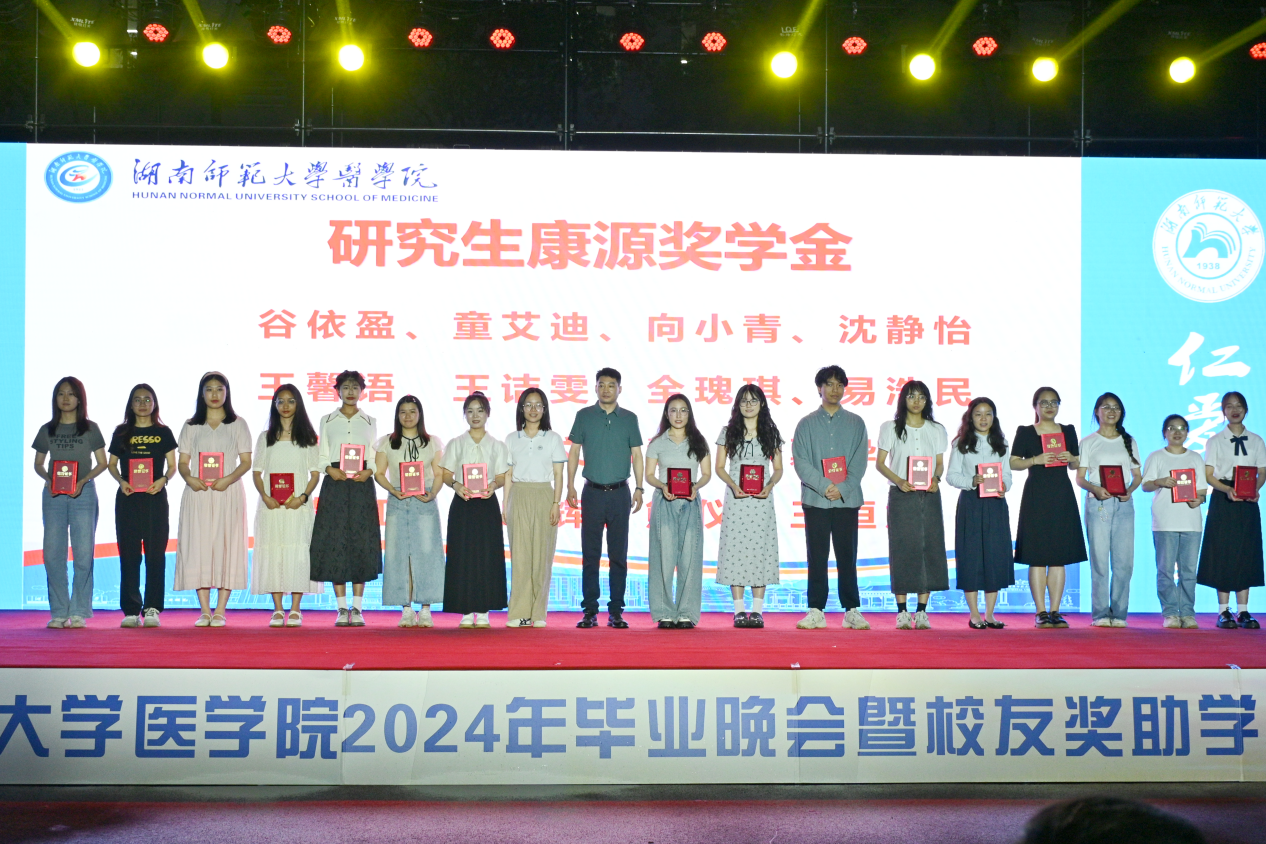 本次颁奖典礼共颁发了何祖平—蒋吉吉医学之星奖学金、长沙市妇幼保健院奖(助)学金、海南汉森奖(助)学金、刘红蕾奖学金、刘习明奖学金、凯普创新创业奖学金、戴敬康奖(助)学金、杨勇军-田静奖(助)学金、南京江河华晟奖(助)学金、向延明助学金、东莞友华医院奖(助)学金、研究生康源奖学金、金圣达助学金、邓志辉助学纾困专项资助助学金等十四项,共294名同学与团队获奖,部分校友上台颁奖。
