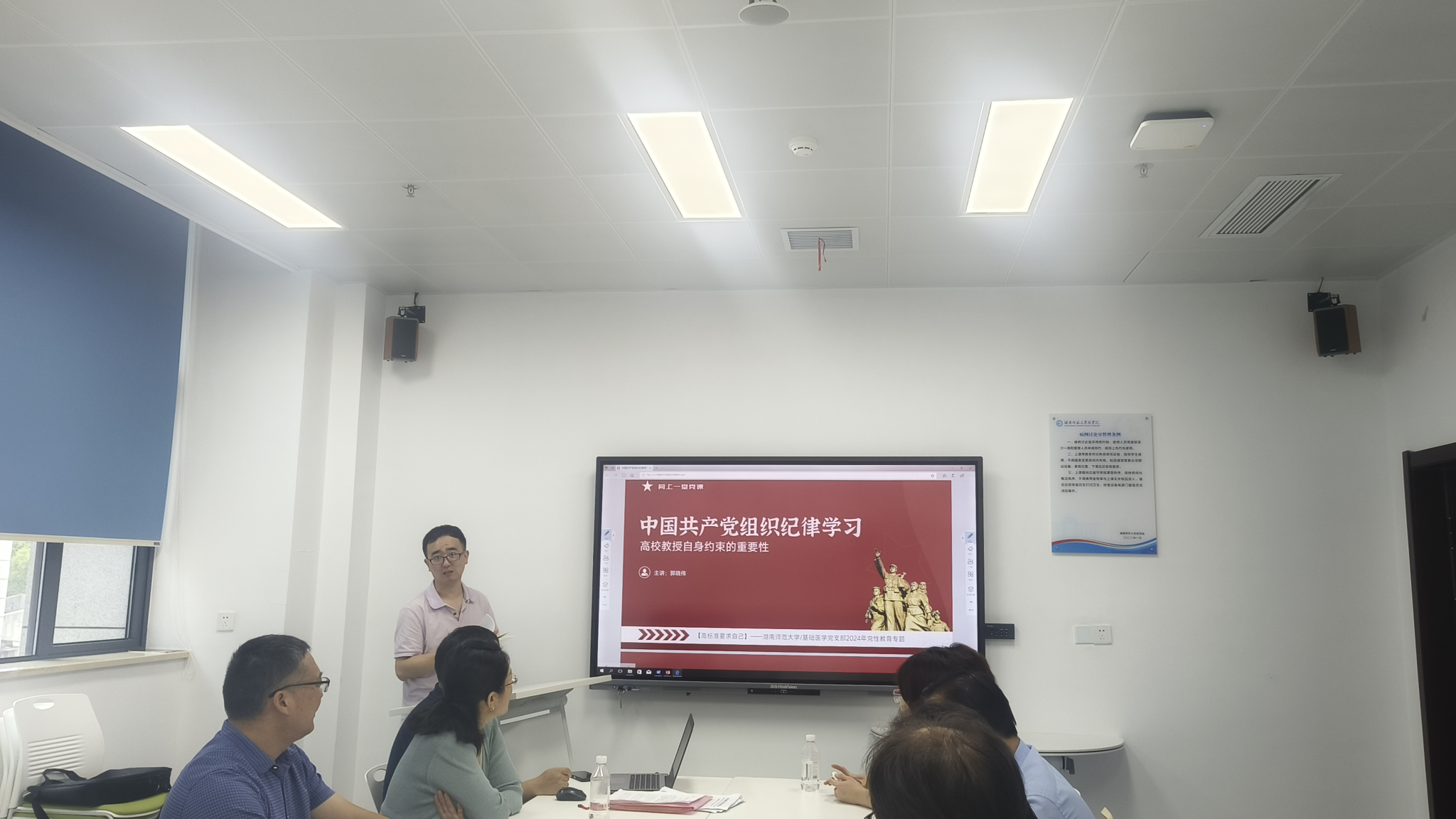 然后由支委组织委员郭晓伟做了《高校教师自身约束的重要性》和宣传委员丁思余做了《中国共产党纪律处分条例之廉洁纪律》微党课。