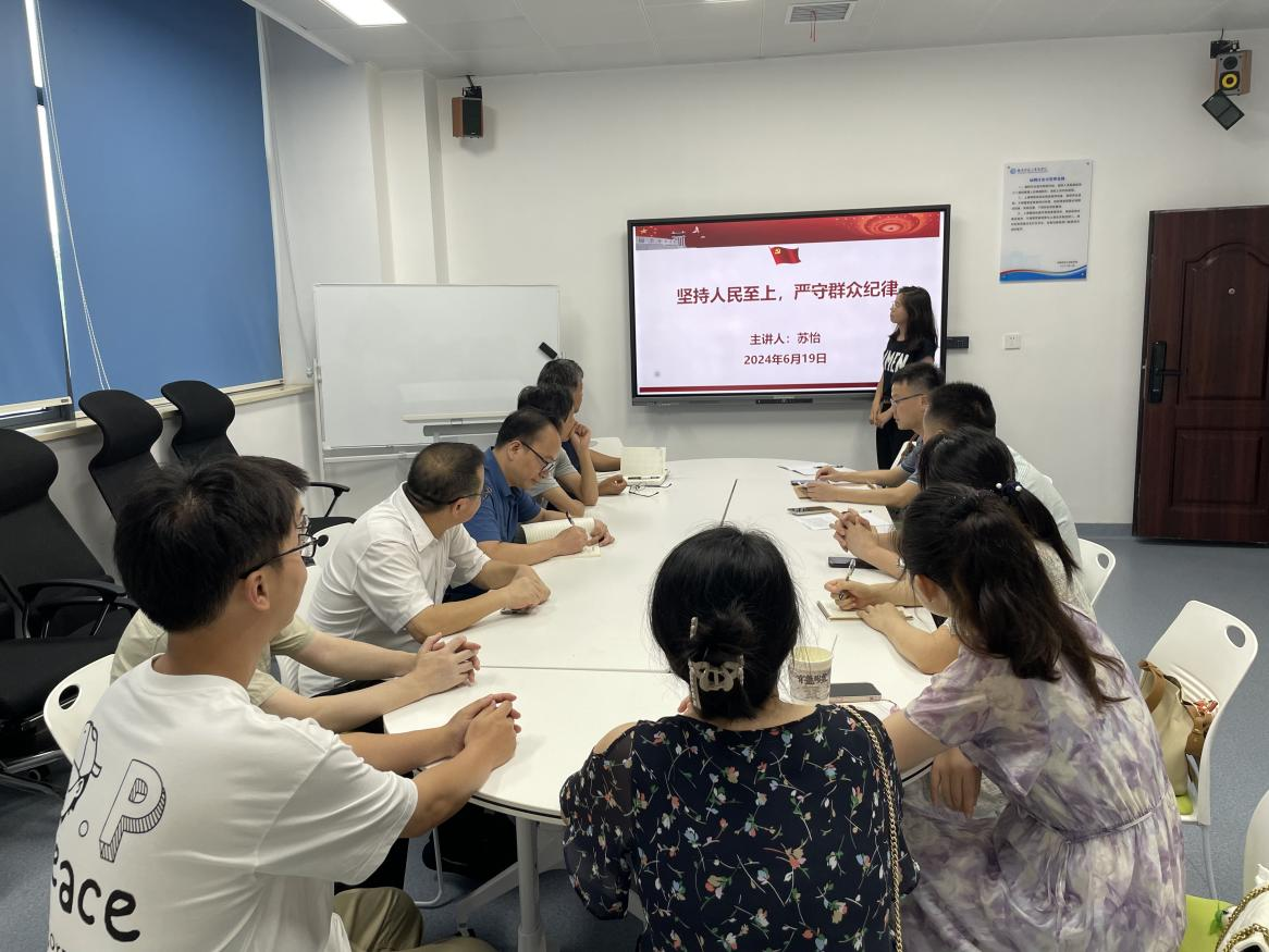 支部副书记苏怡做了题为《坚持人民至上,严守群众纪律》的微党课,群众纪律要求我们党在各项工作中都要密切联系群众,倾听群众意见,关心群众疾苦,解决群众困难。党的生命力来源于人民群众的拥护和支持。只有严守群众纪律,我们才能赢得人民群众的信任和拥护。党员们深刻认识到“坚持人民至上,严守群众纪律”的重要性。