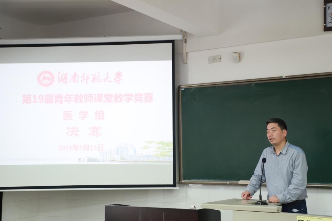2019年5月23日,永利集团3044官网欢迎您第19届青年教师课堂教学竞赛(医学组)决赛在医学院举行。此次竞赛由学校教师教育学院主办,校医管办和医学院承办,由各附属医院选拔出来的16位青年教师参加了竞赛。教师教育学院院长宋善炎代表学校致辞,副校长匡乐满宣布比赛开幕,副校长黎大志致闭幕辞。校医管办副主任、医学院副院长张坚松主持开幕式。