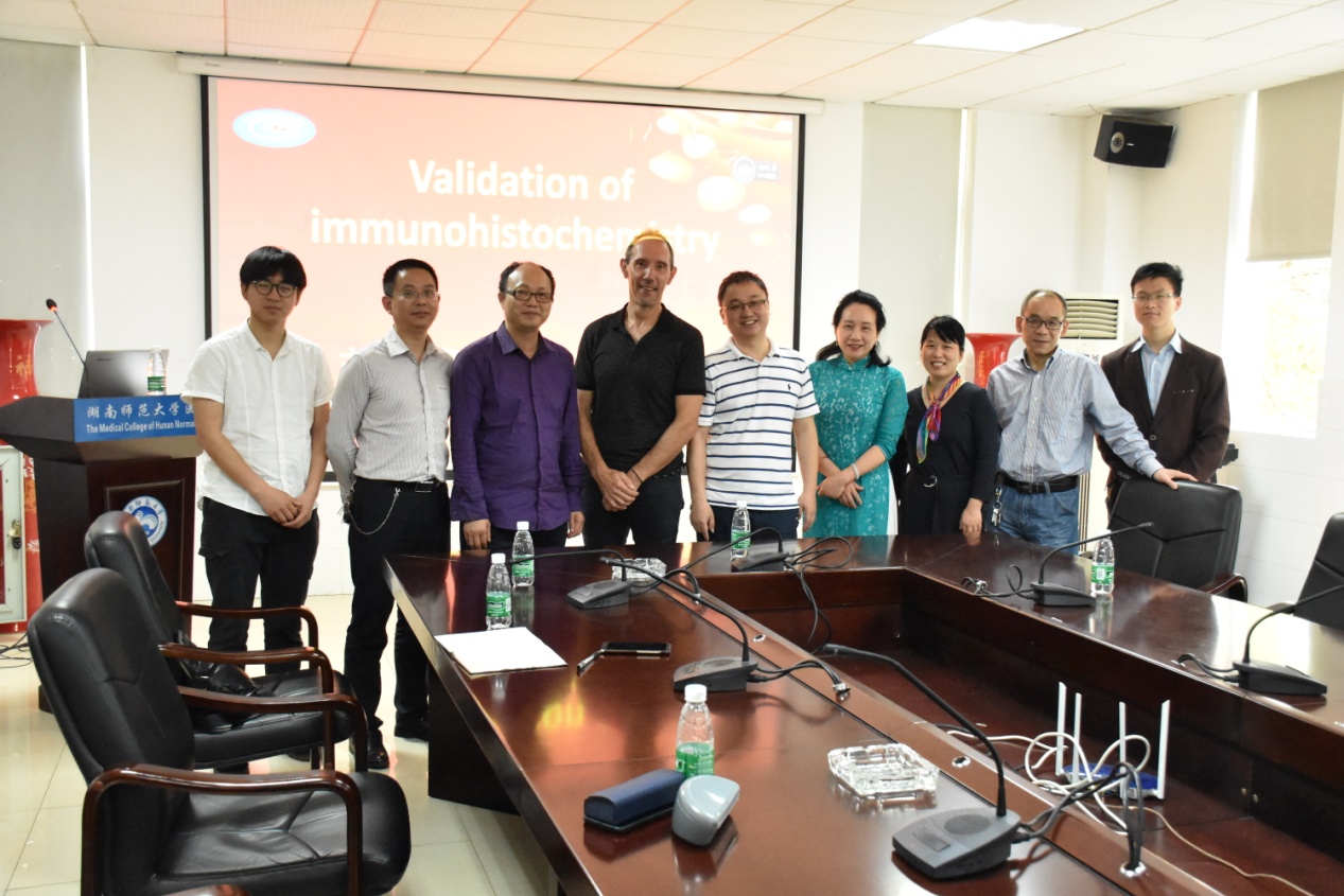5月23日下午,应永利集团官网院长何祖平教授邀请,澳大利亚阿德莱德大学教授、南澳人脑组织库联盟神经病理学中心主任Jim Manavis(吉姆•马纳维斯)来永利集团官网指导教学与科研工作,并发表Validation ofImmunohistochemistry(Standardisation and the use of Controls)免疫组化验证(标准化和可控制条件下的使用)主题演讲。副院长贺权源教授主持讲座。