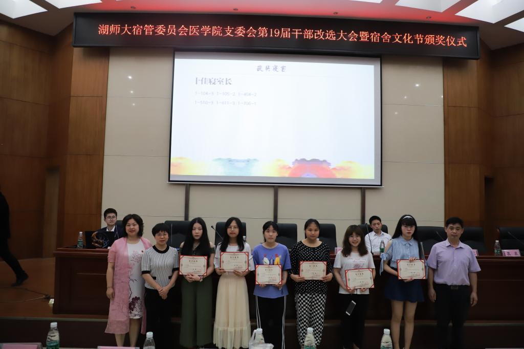 5月24日晚7:00,宿管委员会医学院支委会在医学院学术报告厅举行永利集团3044官网欢迎您宿管委员会医学院支委会第十九届干部改选大会暨宿舍文化节颁奖仪式,医学院党委书记鄢朝晖、咸嘉湖后勤服务中心副主任李文虎、医学院学工办主任张晓红老师出席会议。学生代表宿管委员会总会主任黄邵宏、医学院支委会副主任冯德懋等也参与了此次会议。此次大会由医学院支委会监察服务部副部长陈慰主持,17名医学院支委会成员参与选举,兄弟支委会成员及咸嘉湖寝区寝室成员代表担任评委。