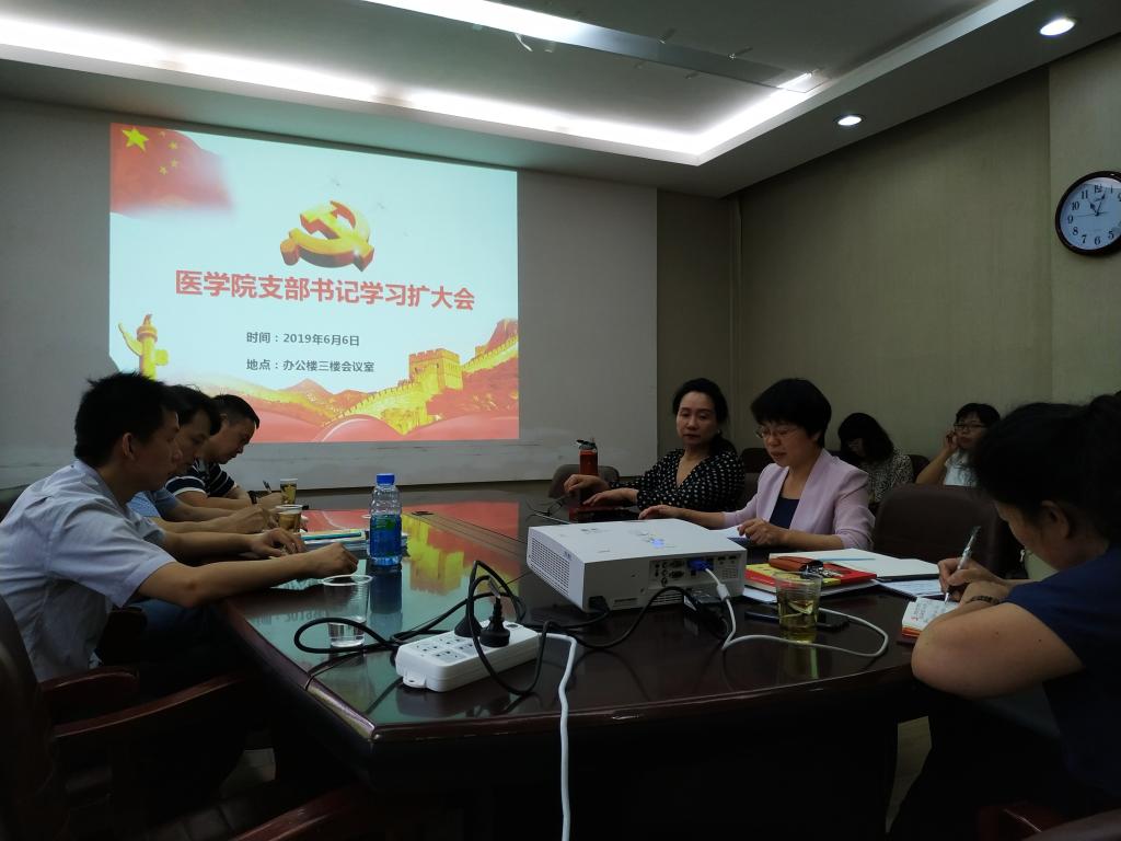 2019年6月6日上午,医学院党委召开支部书记学习交流大会,全体在职支部和本科生、研究生支部书记及部分党员代表参加了会议,会议由党委书记鄢朝晖主持。