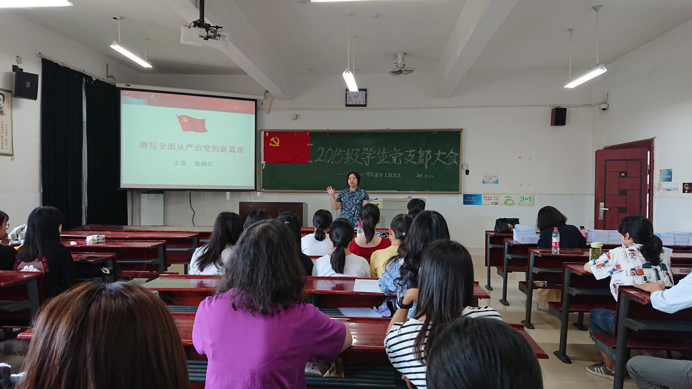 9月22日上午,永利集团官网15级学生党支部在仁医楼204召开“谱写全面从严治党的新篇章”主题党课,院学工办主任、支部书记张晓红担任主讲人,15级全体党员参加此次党课。