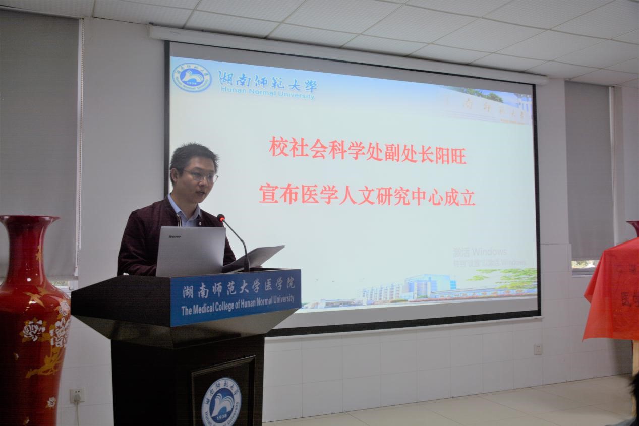 校社科处副处长阳旺宣读了学校关于成立医学人文研究中心的决定。