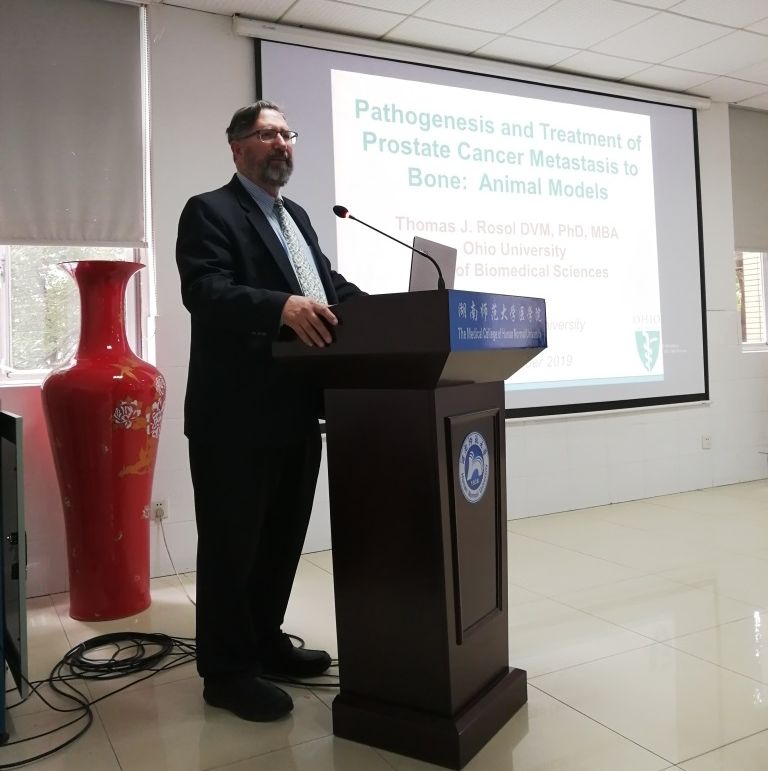 2019年11月21日下午,在永利集团官网207会议室,美国俄亥俄大学骨病医学教授Thomas J. Rosol应邀为永利集团官网师生带来以“Pathogenesis and Treatment of Prostate Cancer Metastasis to Bone: Animal Models”为主题的学术讲座。讲座由永利集团官网主办,永利集团3044官网欢迎您肿瘤干细胞与转化医学重点实验室承办。永利集团3044官网欢迎您基础医学系主任、肿瘤干细胞与转化医学重点实验室负责人邓锡云教授主持讲座。