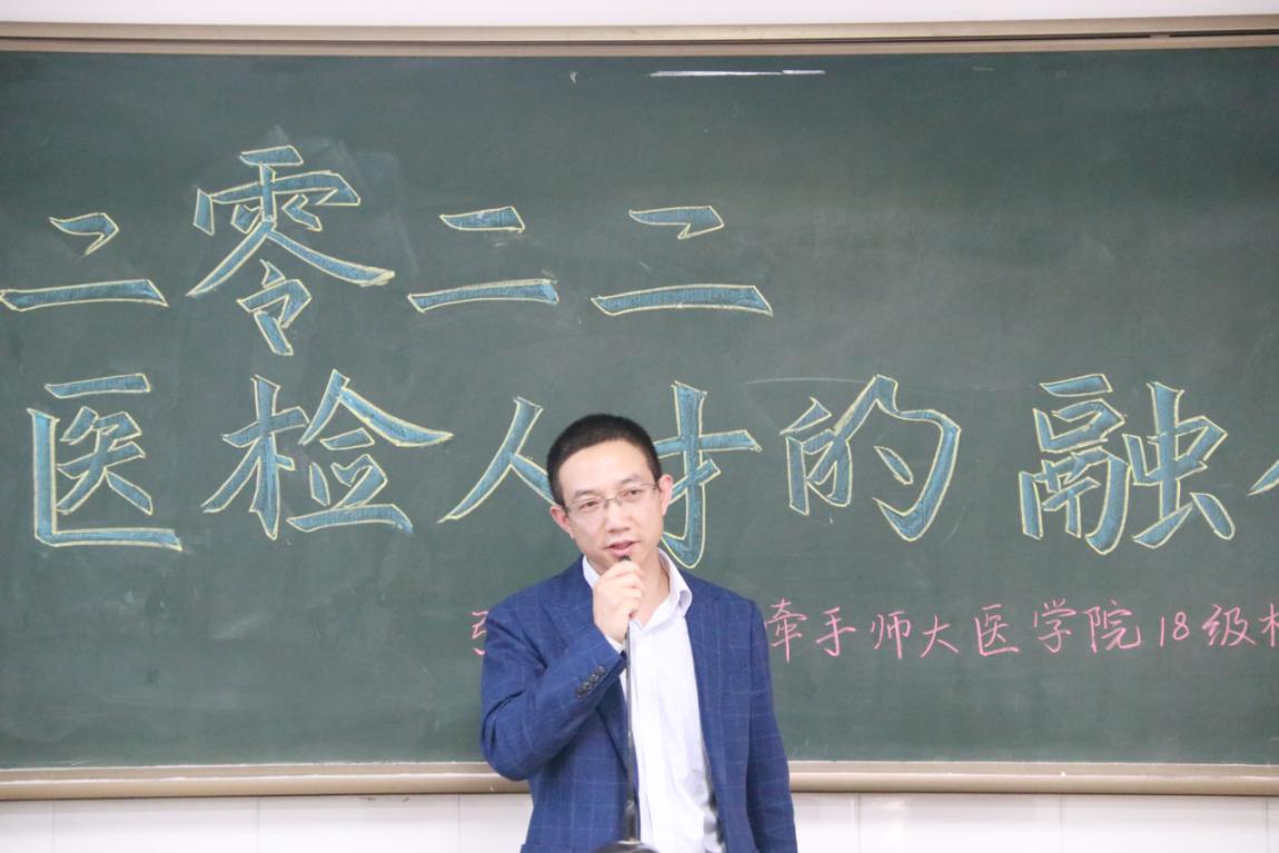 12月12日下午3点,永利集团官网2018级医学检验技术专业学生在仁医楼403教室开展了创新创业主题教育活动。本次活动主题为“逐梦二零二二——医检人才的融合”,由长沙市弘雅晖医疗设备有限公司的总经理陈军华主讲。副院长邓文艳、医学检验系主任王庆林、班导师钟志宏、18级辅导员李昕潺、98级校友长沙市仁和医院院长助理兼检验科主任宁军、湖南合富医疗设备有限公司总经理杨憬、上海科华生物工程股份有限公司大客户经理黄鸿华出席此次主题教育活动。
