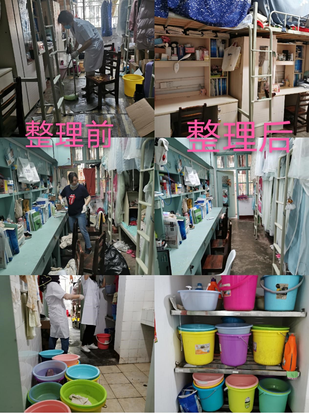 动员结束后,全体党员以支部为单位分赴各自责任的寝室,全面开展卫生清扫工作。在每间宿舍里,党员教师、管理干部和教辅人员并肩作战,整理桌面、清扫地面、擦试窗台、通风消毒,一场热火朝天的“卫生总动员”如火如荼地迅速铺开。经过半天的辛苦劳动,疫情期间长期未使用的寝室焕然一新,窗明几净、舒适整洁的寝室环境让人眼前一亮,卫生清扫工作大功告成。