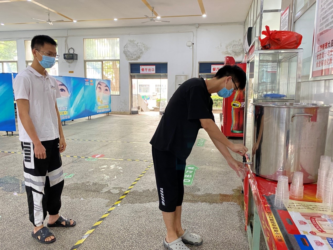 上课的第一天,一壶壶经过咸嘉湖校区后勤服务中心食堂精心熬制的中药摆放在食堂和宿舍显眼位置,同学们自觉排队饮用预防中药。在返校复学这一关键时刻,校友捐赠的这一批中药,体现了校友对学院莘莘学子的爱护与支持,为全院师生抗击疫情、坚决打赢疫情防控阻击战提供了一股强心剂。