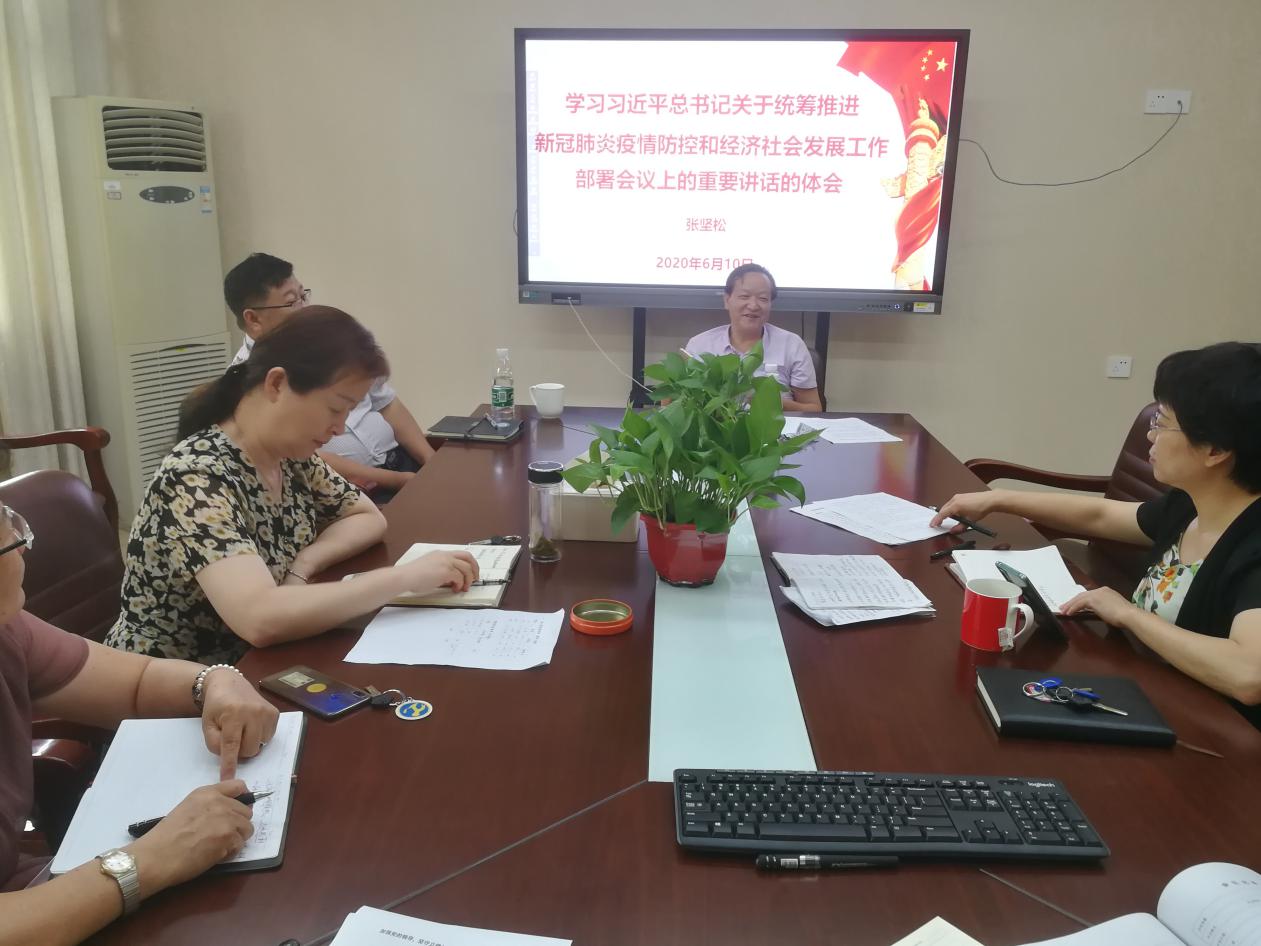 张坚松结合两会精神,围绕学习习近平总书记关于统筹推进新冠肺炎疫情防控和经济社会发展工作部署会议上的重要讲话精神进行了主题发言。