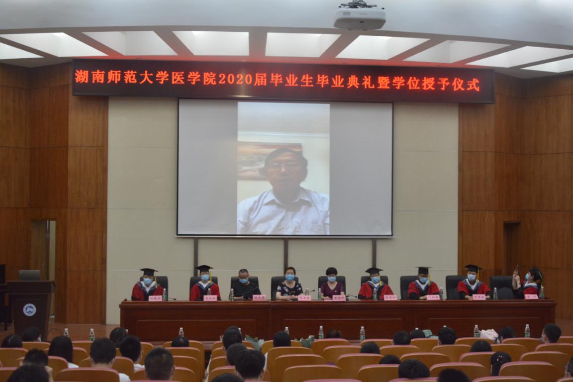 远在海外的院长何祖平以视频的方式,代表全院教师向毕业学子致祝福寄语:希望同学们不忘初心,救死扶伤,防病治病,践行医学人道主义;不负青春韶华,砥砺奋进,做新时代医学追梦人。