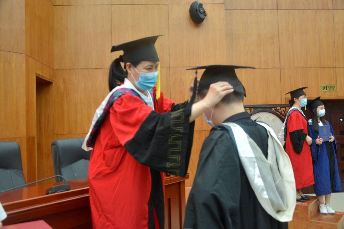在学位授予仪式上,学生们依次走上主席台,接受教授的拨穗,这也标志着他们学业的完成,并正式走向广阔的人生舞台。伴随着庄严的拨穗礼,即将离开母校的学子们感慨万千,与老师们紧紧拥抱,难分难舍。