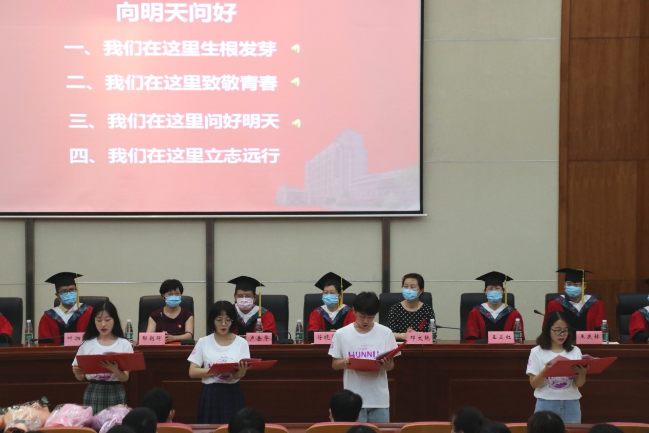 2015级临床医学系雷明慧、2016级药学系晏斯琦、2016级护理系翦维娜,2016级药学系谢鑫作为学生代表一齐发言。他们回望了自己在学校生根发芽的过去,致敬自己在学校奋斗中播撒的青春,展望了前程似锦的未来。