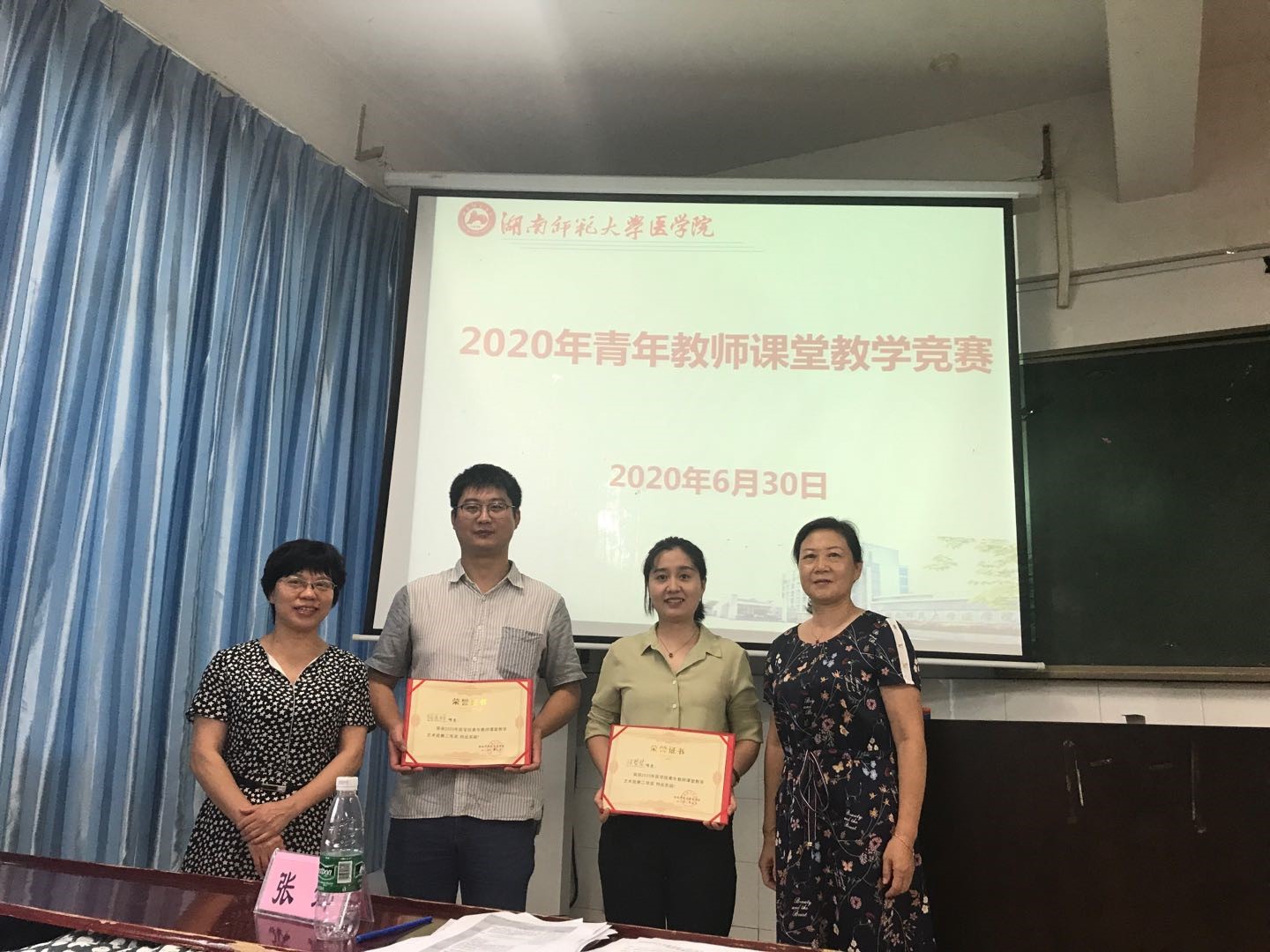 在闭幕式上,学校教学督导张娜教授进行了点评。她从教学的内容、教学组织、语言教态、教学特色及教学的设计和反思等方面对每位选手进行了逐一点评。她指出,此次竞赛多数课件设计新颖直观,课程设计有创意;老师讲述清晰,语速均匀,内容充实,特别是个别老师面对意外情况从容处理,临危不乱,受到一致赞许。她对每位老师存在的不足之处提出了改进建议。张坚松副院长宣布了比赛结果,院领导和教学督导为获奖选手颁发了获奖证书。