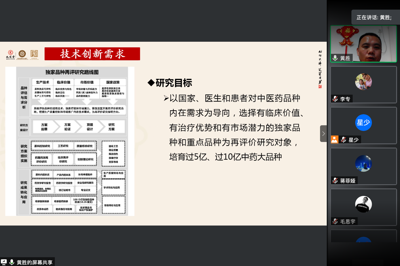 7月1日晚,九芝堂股份有限公司研发部黄胜主任应邀请为药学系师生讲座“企业产业技术创新现状与需求”。药学系部分老师和全体研究生参加,讲座由药学系主任冯星主持。
