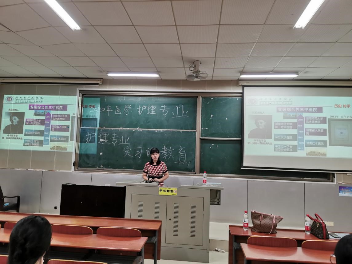 为了让即将实习的护理学子们更加了解实习流程和注意事项,尽快进入实习角色,7月16日晚7点,永利集团官网护理系在仁医楼306教室召开了2017级护理专业学生实习前教育。出席会议的有护理系主任王卫红、实习办主任赵艳玲、湖南省人民医院临床护理教研室主任陶美伊。
