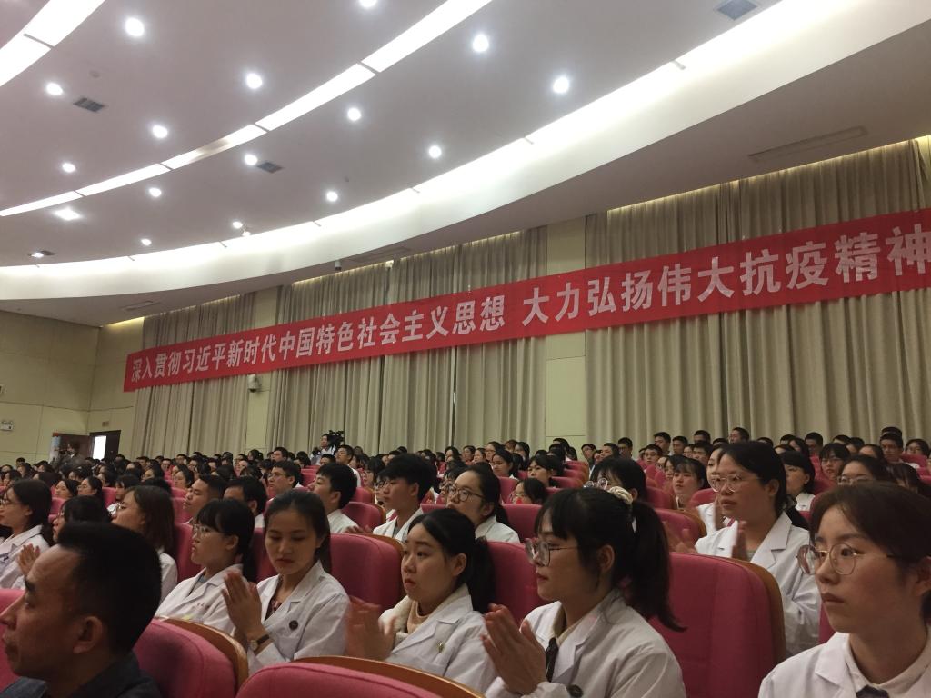 湖南首批援鄂医疗队队长、我校1989级临床医学专业校友朱华波,以“医之大者,为国为民”为题,从坚持党的领导、坚持勇往直前、坚持无私奉献等方面,讲述自身抗疫的经历。