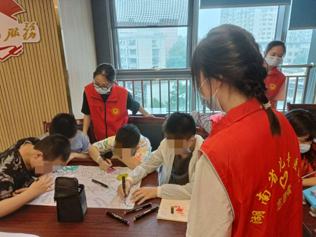 活动当天,志愿者们提前到达目的地,登记姓名,领取志愿者服装。在与医院活动负责人沟通好注意事项,了解自己的工作后,到达指定的位置,提供志愿服务。活动临近六一儿童节,志愿者们提前做好准备,以便和小朋友们进行更好的沟通交流。初见志愿者,虽然小朋友们略显拘谨,但志愿者积极主动陪小朋友们做游戏,鼓励孩子们参与游戏,孩子们也慢慢打开了心扉,会议室充满欢声笑语。游戏环节结束后,志愿者们拿出提前准备好的纸和笔,与孩子和家长们一同绘制儿童节图画。孩子们踊跃参与,发挥自己的想象力。活动结束后,志愿者对孩子们的学校作业以及课堂学习中遗留的难点问题进行讲解,帮助孩子们解决学习上遇到的困难。