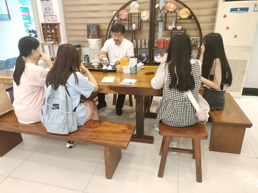 活动开始,我队按顺序进入“飘香全球”“千年茶韵”等展厅了解了茉莉花茶的发展历史、制作工艺和创新产品,并体验了制茶流程。随后,队员们与公司工作人员展开座谈会,讨论了茉莉花茶的弘扬与传播途径、发展方向和战略措施,并提供相关建议。