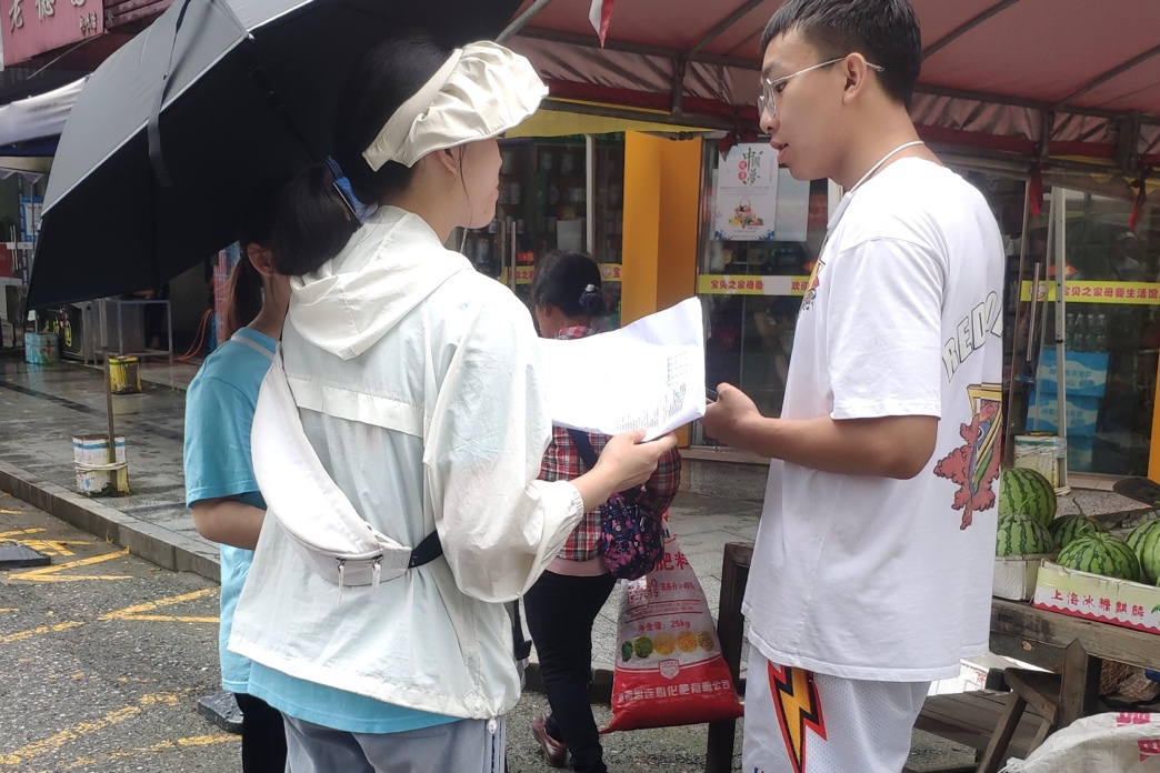 在队长唐静怡带领下,所有队员前往鹿原镇集市,向当地居民询问并了解青少年学习情况与心理健康情况,并向青少年发放调查问卷,进行实际数据统计。在居民的热心帮助下,队伍成功发放了所有问卷并及时收回,初步调研任务就此完成。