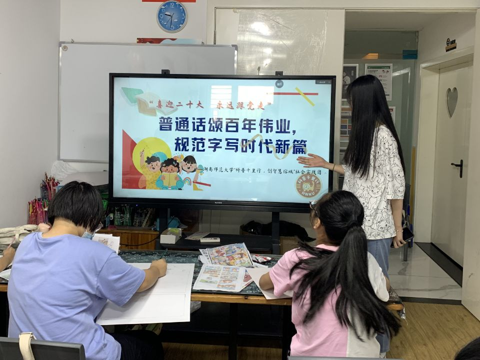 活动期间,队员林紫颖向孩子们从普通话的日常功能、普通话推广对于时代发展的重要意义、和如何说好普通话几个方面进行了介绍,同时与孩子互动交流,帮助他们更好的理解所讲内容。