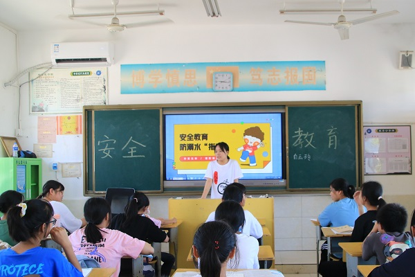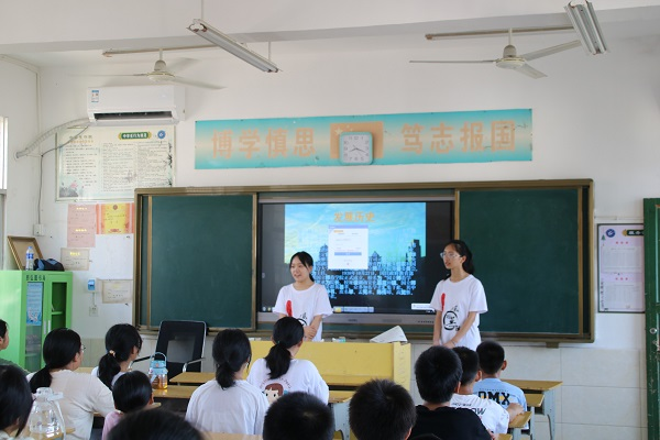 见面会伊始,队长文梦瑶介绍了“乡伴童心,乡伴成长”队伍的归属学校、学校历史以及本次社会实践活动的计划和目标。并提出了对同学们的要求。随后,队员们依次进行了自我介绍,并对自己负责的课程进行了简要描述。他们带来的有趣的课程很快就吸引了同学们的注意。然后,同学们也一一进行了自我介绍,讲述了自己的性格特点及爱好等。最后,健康专题组组员白玉玲上了开学第一课——暑期安全教育课。她主要介绍了暑期多发安全事故,着重强调了防溺水注意事项。