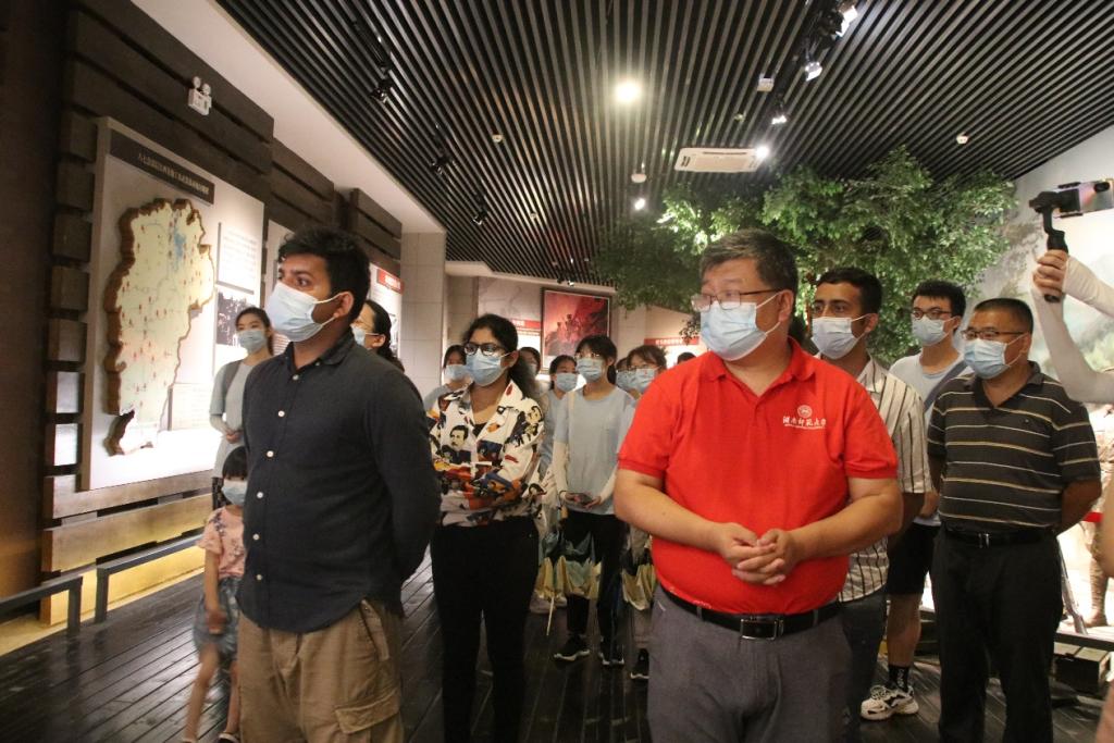 团队一行人来到秋收起义纪念馆大厅,大家怀着无比崇敬的心情,在工农革命军第一军第一师军旗和毛泽东同志塑像前行三鞠躬。随后,大家依次参观了“危难中奋起”“霹雳一声暴动”“转兵井冈山”“永远的光荣”等专题展区,认真聆听专题讲解,在一幅幅照片、一件件文物面前,驻足凝神观看,仿佛置身于那风雨如磐的革命年代,历经硝烟战火的岁月,目睹革命先辈们浴血奋战、英勇杀敌的场景,感受无数共产党人“为中国人民谋幸福、为中华民族谋复兴”的初心使命。留学生们更为透彻地理解了湘赣边界秋收起义伟大革命斗争的历史意义,由衷地钦佩中国革命先辈们前仆后继,勇敢无畏的精神。