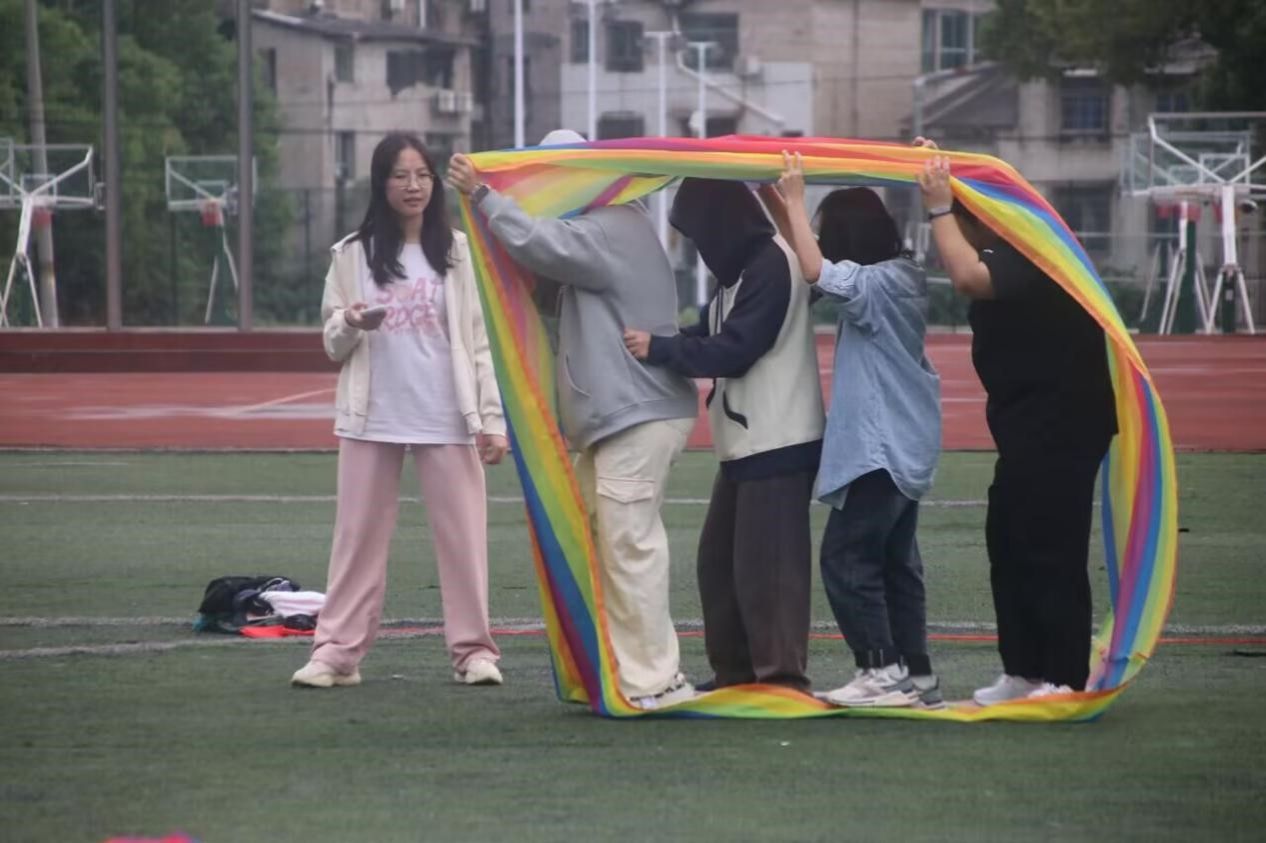 “依然范特西”是一个以想象力发散为基础的藏头诗创作活动,同学们根据自己的喜好选择一张图片,想象出相关物品并由此作诗,发挥自身想象力的同时涵养了相关文学素养。“心理集市”分为四个小游戏:圈在我身上,“乒乓筷跑”,齐心合力接力赛,无敌风火轮。其要求同学们每四人组成一队,团队合作,齐心协力,共同完成小游戏,这有利于提升同学们的团队合作能力,感受运动的快乐,增添美好校园回忆。