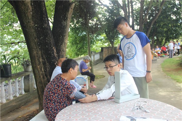 调研团队乘船抵达敬老院,敬老院工作人员和老人们表示欢迎,院长与活动负责人进行了交谈。院长讲述了老人们和养老院的具体情况,并表示将会配合调研队对老人进行身体健康方面的调研。调研的内容分为两个部分,其一为队员们与老人交流,完成健康调查问卷,二为对老人们的体能测试,队员们帮助老人们测量血压、测量身高体重、测式握力和测式步行。健康调查问卷使队员们与老人们有更多的交流。队员们同老人畅谈,对老人们的身体健康进行深入的了解,老人们的衣、食、住、行,都以问卷的形式,呈现在队员们眼前。队员们运用专业的器材对老人们的身体进行细致的检查,力求调查结果准确合理。老人们配合队员完成了检查,队员们也完成了调研。