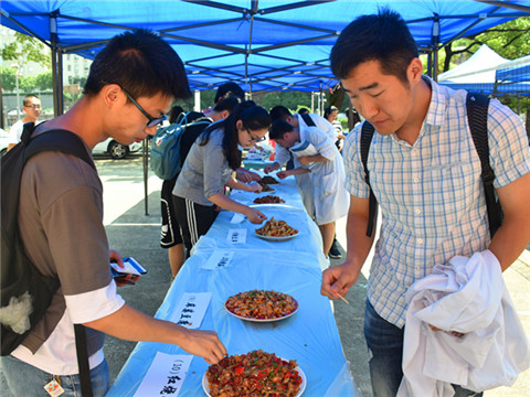 活动主要是由同学们试吃主办方提供的菜品然后投票选出最好的菜品。据悉,活动主办方学生会权益部通过官Q留言、校内调查获得菜单,汇集各食堂的美味。活动形式贴近生活,故而得到同学们的响应,同学们试吃菜品,互相交流看法,为自己喜欢的菜品投票。同时,主办方也将各食堂的服务窗口照片至于展示板上,让同学在为菜品投票时,也可以为制作这些菜品的叔叔阿姨们带去关心。现场气氛活跃,同学们玩起了“菜名蹲”即一个人选一个菜名,裁判说出第一个菜名后与菜名对应的同学下蹲说出另一个菜名,被说到菜名的对应同学下蹲再说菜名如此往复,直到有人出错,游戏选出两名决胜者。