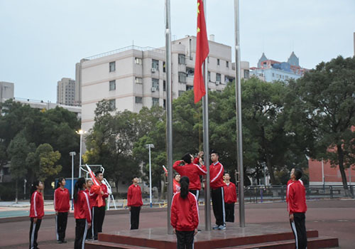 11月6日清晨,医学院组织17级新生在田径场举行升旗仪式,2016级学生代表张宇婷以及2017级新生代表戴承明发表演讲。