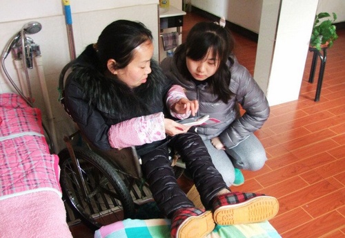 李冬秀是此次志愿活动的服务对象,她由于下肢瘫痪,常年以轮椅代步且家中家具都较为低矮,队员进行家务时往往或弯腰、或下蹲。志愿者到达李冬秀家中后,两名志愿者便开始陪着她聊天,并不时询问她的健康状况,嘱咐她要乐观地生活。除此之外,志愿者还手把手教会李冬秀使用手机微信,以便加强她与外界的联系与交流。随后,志愿者为李冬秀准备午餐,李冬秀在旁指导志愿者如何洗菜、炒菜。志愿者和李冬秀共进午餐后,志愿者帮助李冬秀收拾屋子并合影留念。