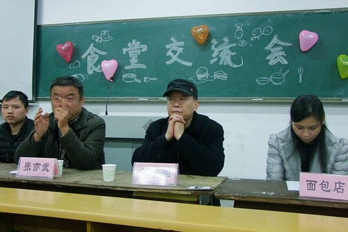 会议伊始,主持人介绍到场嘉宾,然后到场学生代表反映食堂所存在的一些不足,工作人员又说明了事先调查中学生对食堂的一些不满意之处。总结出口味、服务态度、卫生条件还有待提高。随后,食堂负责人对其中一些具有代表性的问题进行解释与交代。其中,就卫生条件这个问题,刘宇湘、张亦武表明会加大对食堂卫生的监督力度,并希望同学们也能参与监督,积极的向学校相关部门反映,同时,学校也将对违反卫生条例的食堂工作人员进行严厉惩罚。现场同学十分活跃,纷纷举手提问,其中一位同学希望食堂能为同学提供免费的汤,让同学们享受更好的就餐条件。最后,在优秀窗口领奖后,交流会圆满结束。