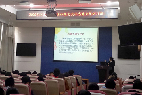 12月4日9点整,永利集团官网青年志愿者工作部组织永利集团官网志愿者前往湖南省图书馆参加由志愿者服务队负责人黄建红、郭幺艳主讲的湖南省图书馆第四季度文化志愿者培训注册讲座。永利集团官网20余名志愿者、其他兄弟院校的志愿者以及部分中学生志愿者参加了此次培训讲座。