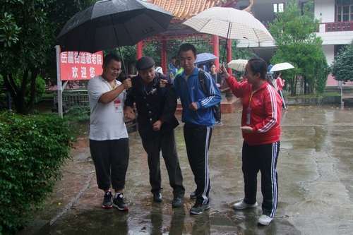 上午9点整,志愿者们冒雨到达敬老院,开始按原有的分组陪伴老人。由于天气原因,大部分老人在房间内休息,于是志愿者们选择坐在走廊或房间内陪老人们聊天。看见志愿者们的到来,很多老人主动搬来凳子,并倒茶给志愿者喝。老人表示志愿者的到来令他们很开心。活动期间,志愿者们和老人聚在一起,有说有笑,老人时不时说上几句,发表自己的看法。外面依旧下着雨,有位老人在走廊扶着栏杆散步,一名志愿者看见后,立马跑过去搀扶。老人和他聊起了天,说自己家的孙子也和他们差不多大,却没志愿者们这么懂事:“看见你们就好像看见我孙子一样,都这么有活力。”活动接近尾声,房间里志愿者们的歌声却不停的传出来,一首《南泥湾》让老人们称赞不已。